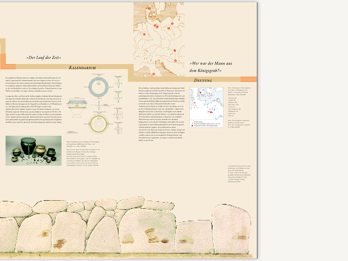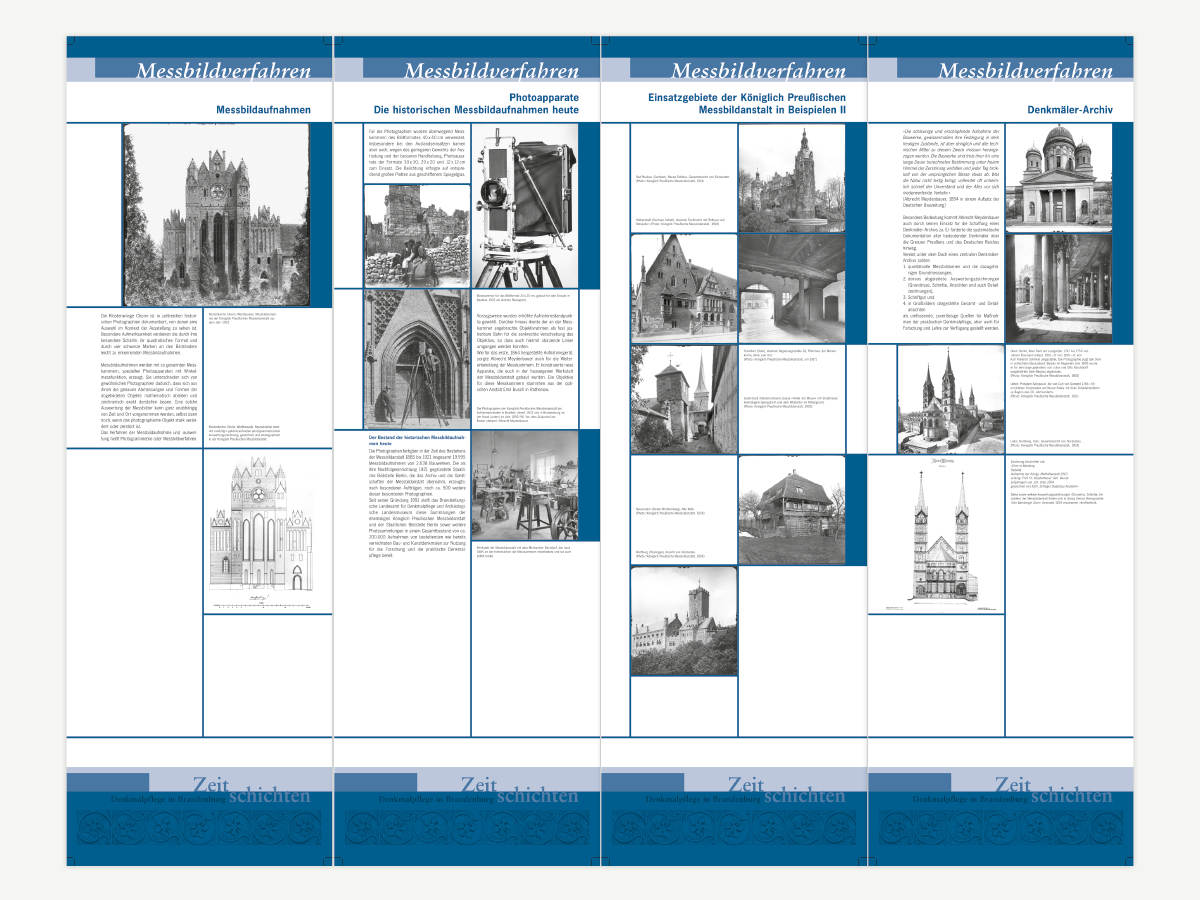 Fernwirkungen, Lichtverhältnisse, Raumwirkung, Besucherströme und Größenverhältnisse. Ich liebe es, wenn aus Flyern, Plakaten, Bannern, Blättermappen und Ausstellungstafeln ein grafisches Gesamtkonzept entsteht. Bei »Zeitschichten« im Kloster Chorin ist uns das durch die Entwicklung eines universellen Gestaltungsrasters geglückt.